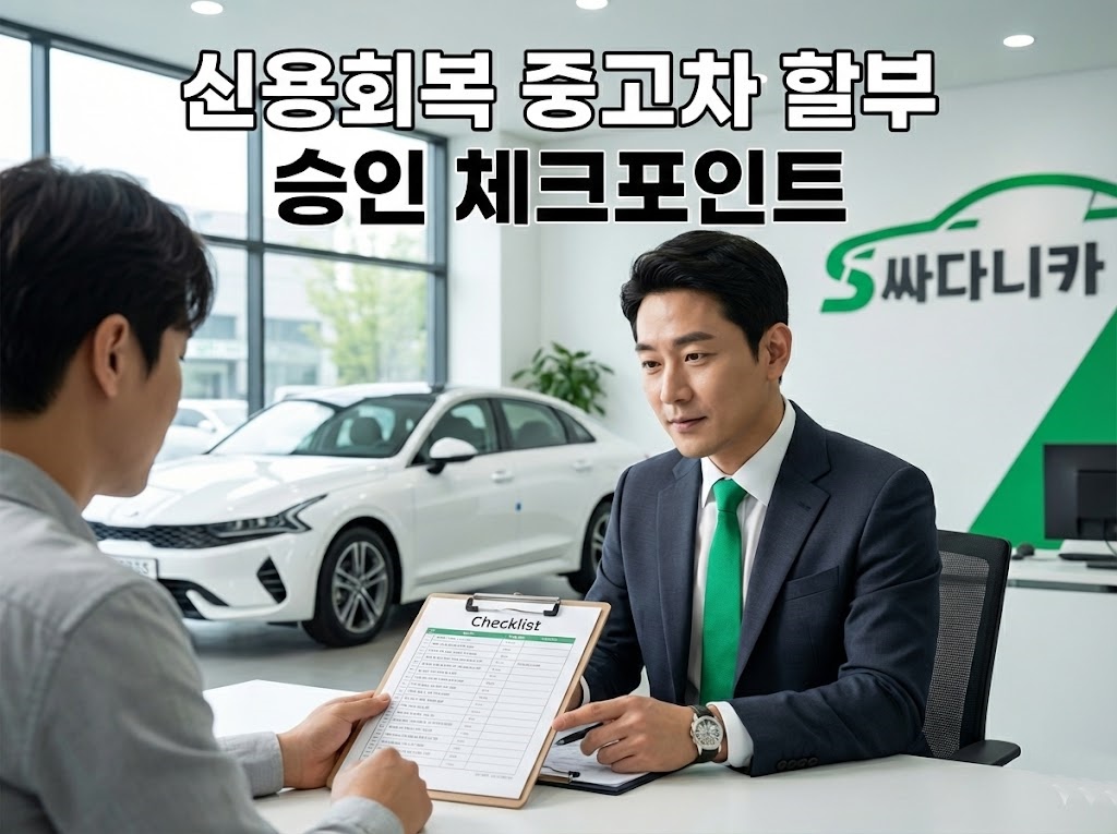 신용회복 중 진행되는 중고차 할부는 일반적인 신용 등급 심사와는 완전히 다른 로직으로 움직입니다. 싸다니카는 단순히 조회를 돌리는 것이 아니라, 고객님의 변제 의지와 상환 능력을 데이터로 증명하여 승인을 이끌어냅니다. 부결을 막기 위해 반드시 체크해야 할 포인트를 공개합니다.